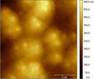 Figure 2 : Image AFM d’un hydrogel PL/CS incorporant le complexe trans(Cl,Cl)-[RuFTCl2NO]Cl (13 µg.g‒1)