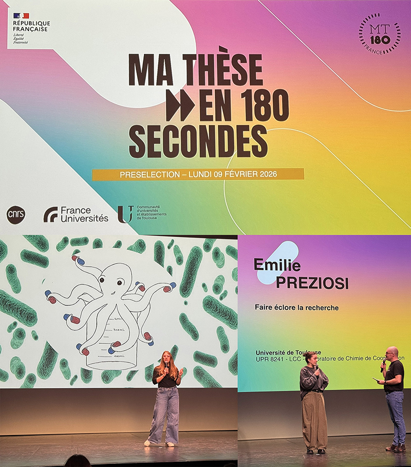Parmi les seize finalistes, deux doctorantes du LCC, Charlotte Aparici et Emilie Preziosi, se sont brillamment qualifiées lors des sélections locales qui se sont déroulées le lundi 9 février.