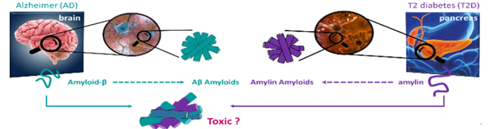 More recently, we are also interested in deciphering at the molecular level the epidemiological link between AD and type-2 diabetes via the study of co-assembly processes.